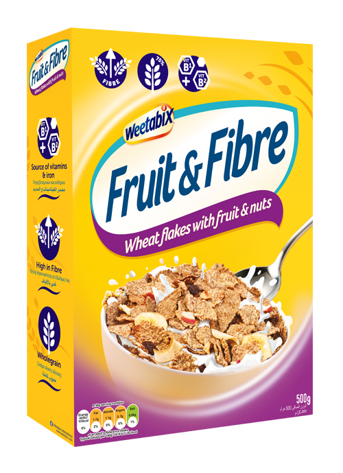 Weetabix Fruit & Fibre are a delicious blend of crunchy wheat flakes, succulent raisins and appetising fruit pieces. They are high in fibre and packed with natural wholegrain.